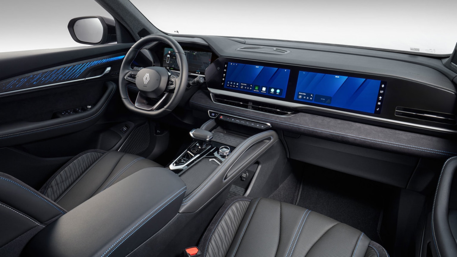 Unutrašnjost Grand Koleosa ima manje promjena u odnosu na svog "starijeg brata". Koristi prepoznatljiv stil interijera s dvostrukim zaslonom na središnjoj konzoli. Središnji most ima podlogu za bežično punjenje telefona, mjenjač koji se može uvući i dva držača za čaše.